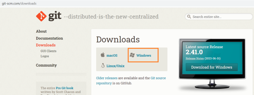 - At first, Visit the official Git website at https://git-scm.com/downloads.