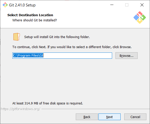 Also, you can change the default location. So, browse the folder in which you want to install the Git and click on next.