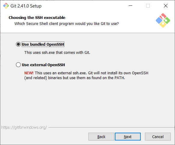 In order to communicate with remote repositories, you need an SSH (Secure Shell) connection. Therefore, select OpenSSH. Because it is well supported by Git.